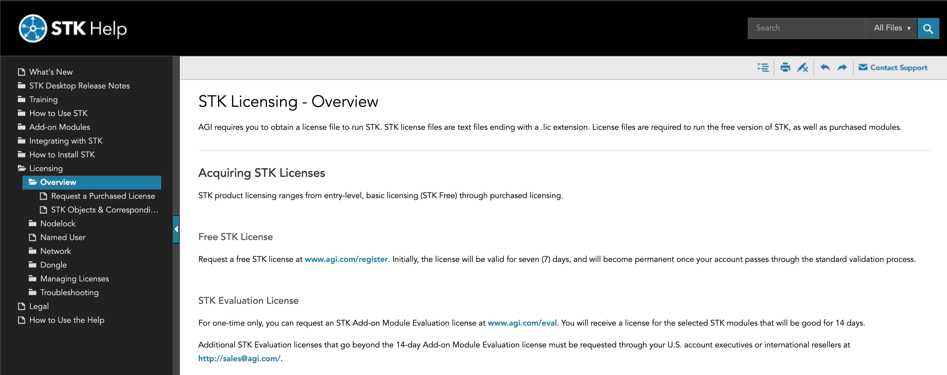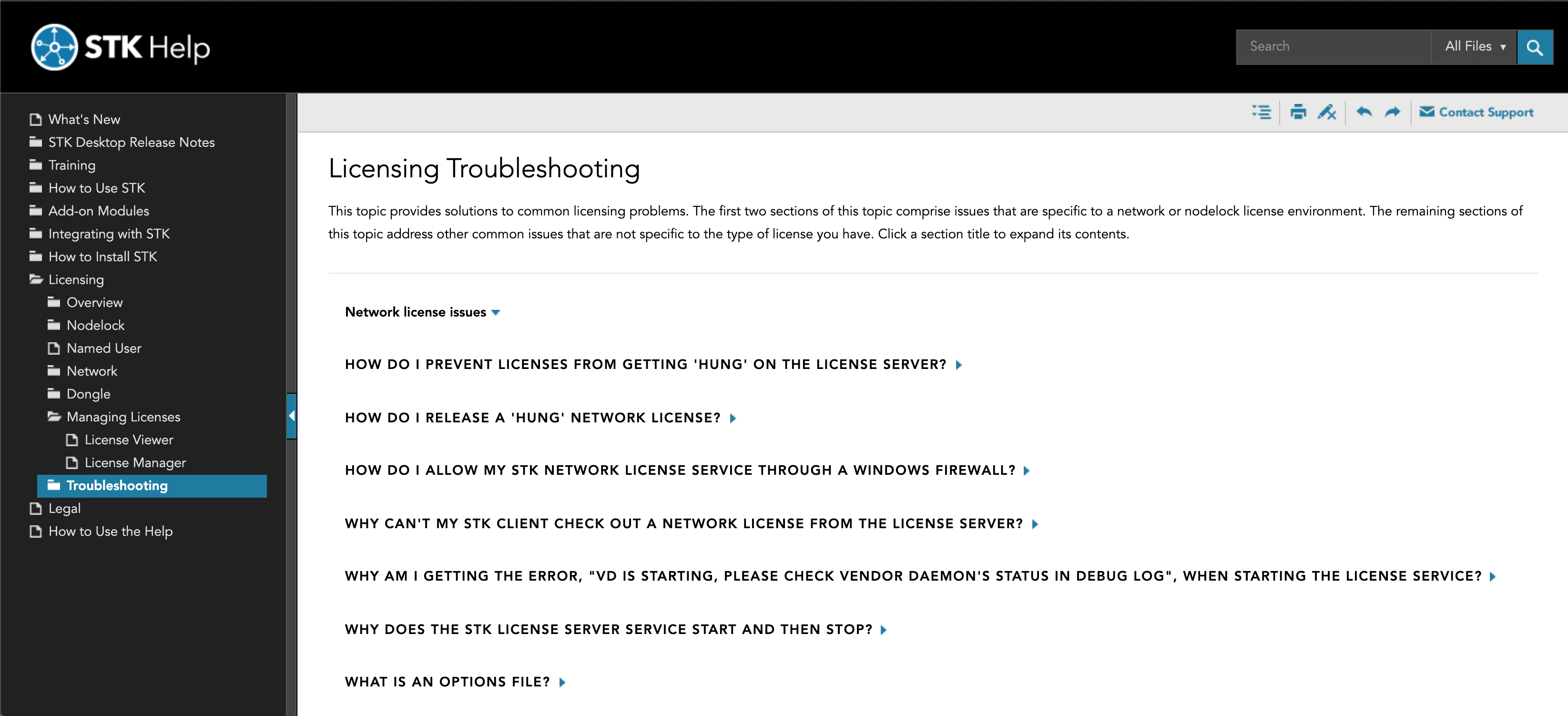As you hopefully know, the STK Help is available not only online but is also installed locally with STK so if you’re not connected to the internet you still have access to it as a resource. That means that users having trouble with licensing, even in a closed environment, now have useful information to help them solve the issues they’re running into right at the tips of their fingers!